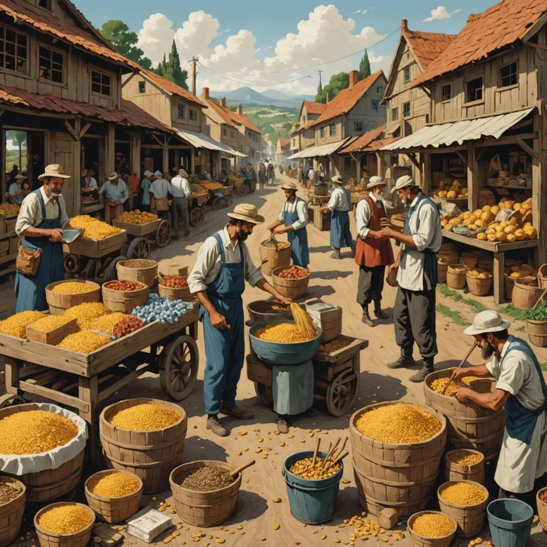 - Бартер между фермерами — обмен зерна на овощи.